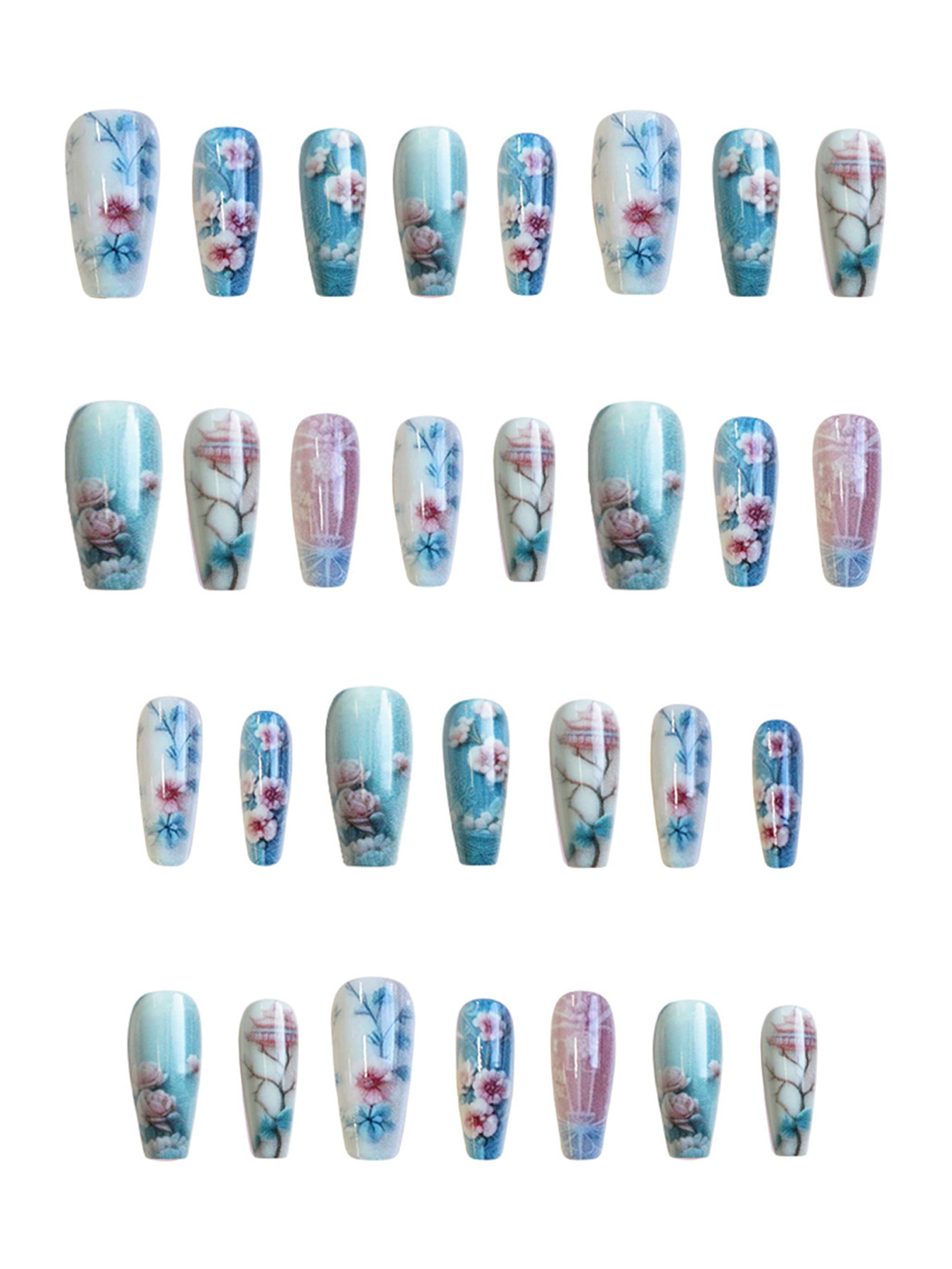 Guofeng Begonia Fake Short T Flower Cold Temperament White 24 Pieces Wear Nail Polish Pieces